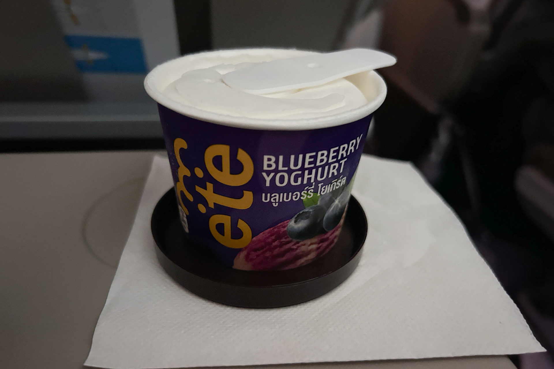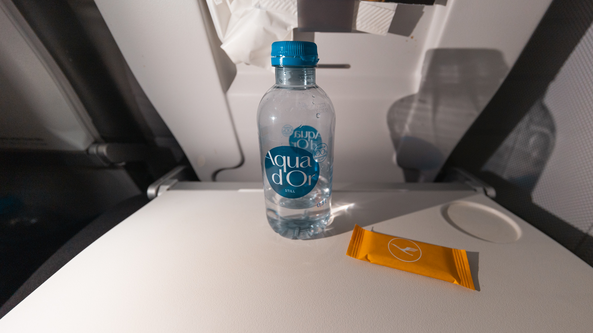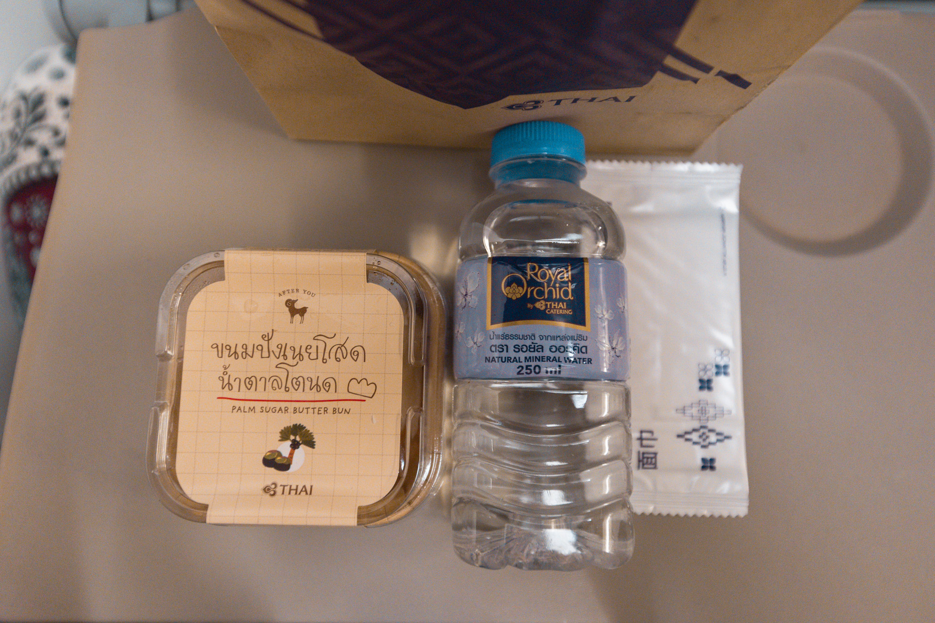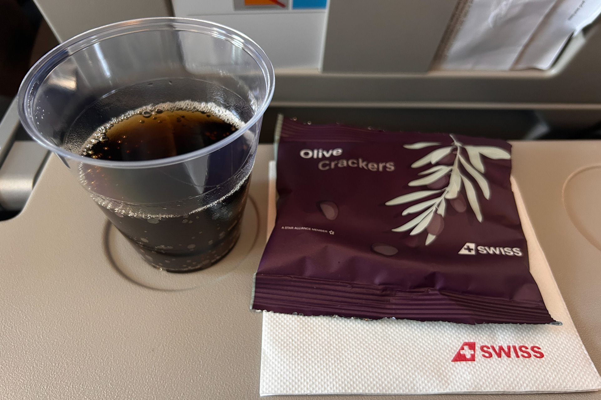 Soon after the seatbelt signs turned off, the crew started handing out a snack and drinks, before the meal service would start later.
