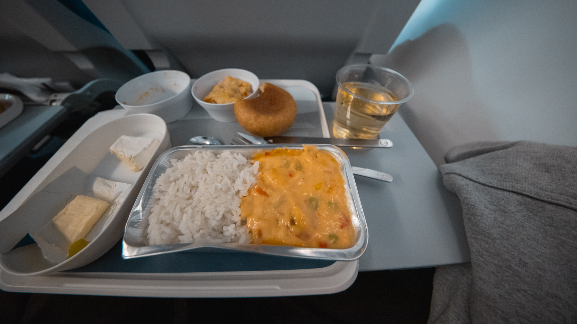 After some time crew started dinner service. At this point I just wanted to sleep, but I felt obliged to try the meals to write about the experience here