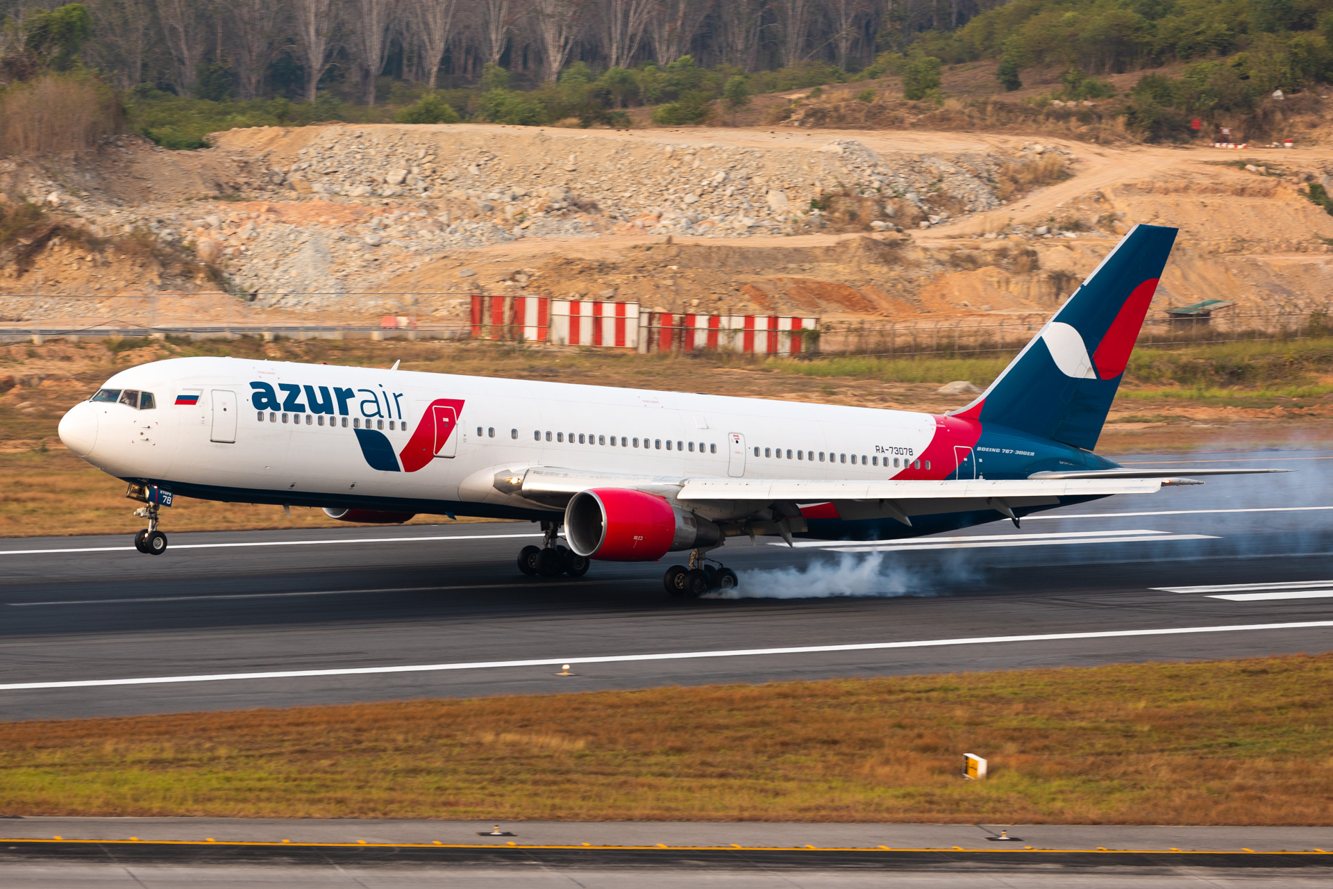 An Azur Air Boeing 767-306(ER), registered as RA-73034 taking off from runway 27