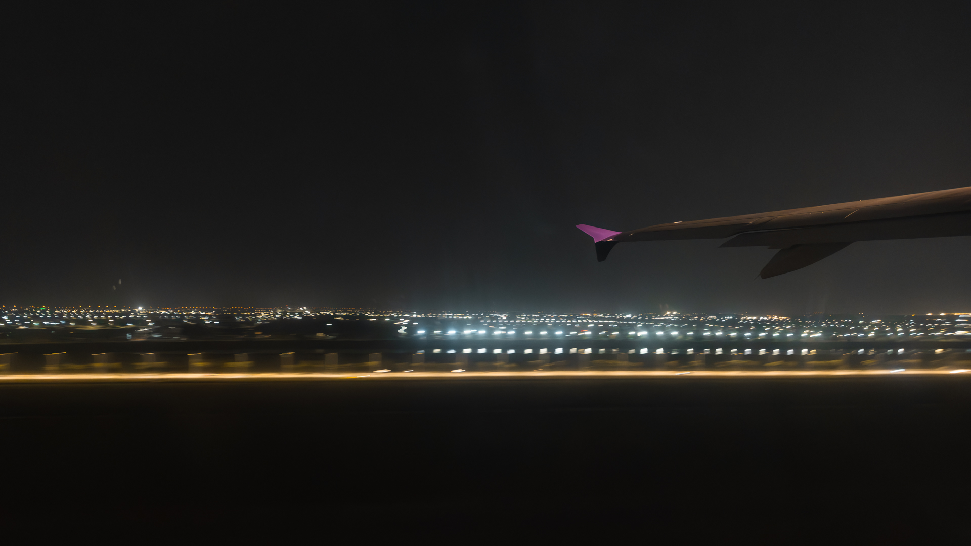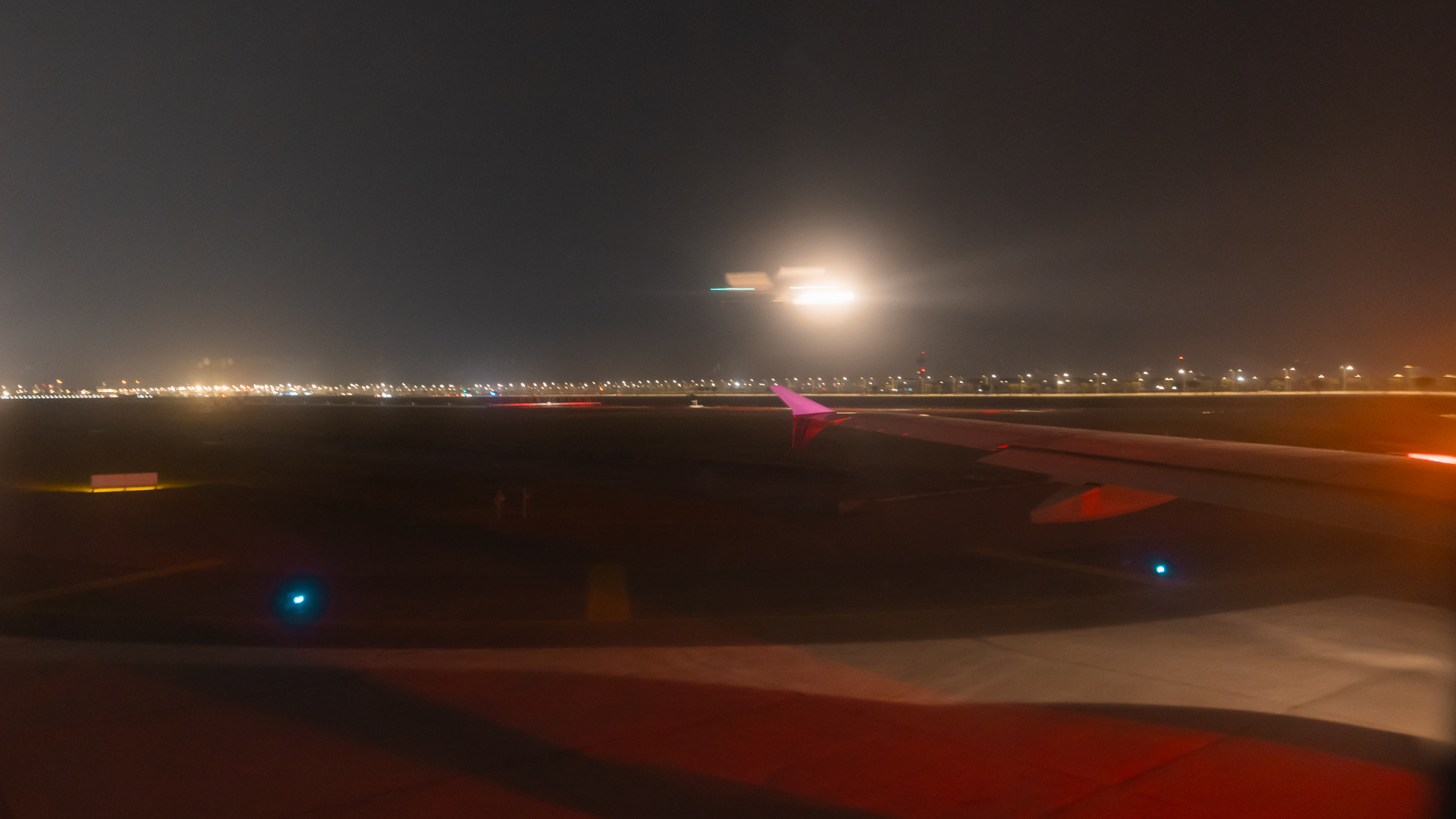 At 11:22pm we finally pushed back from our gate. After some taxiing we lined up on runway 20L and took off with 57 minutes of delay. Soon after the seatbelt