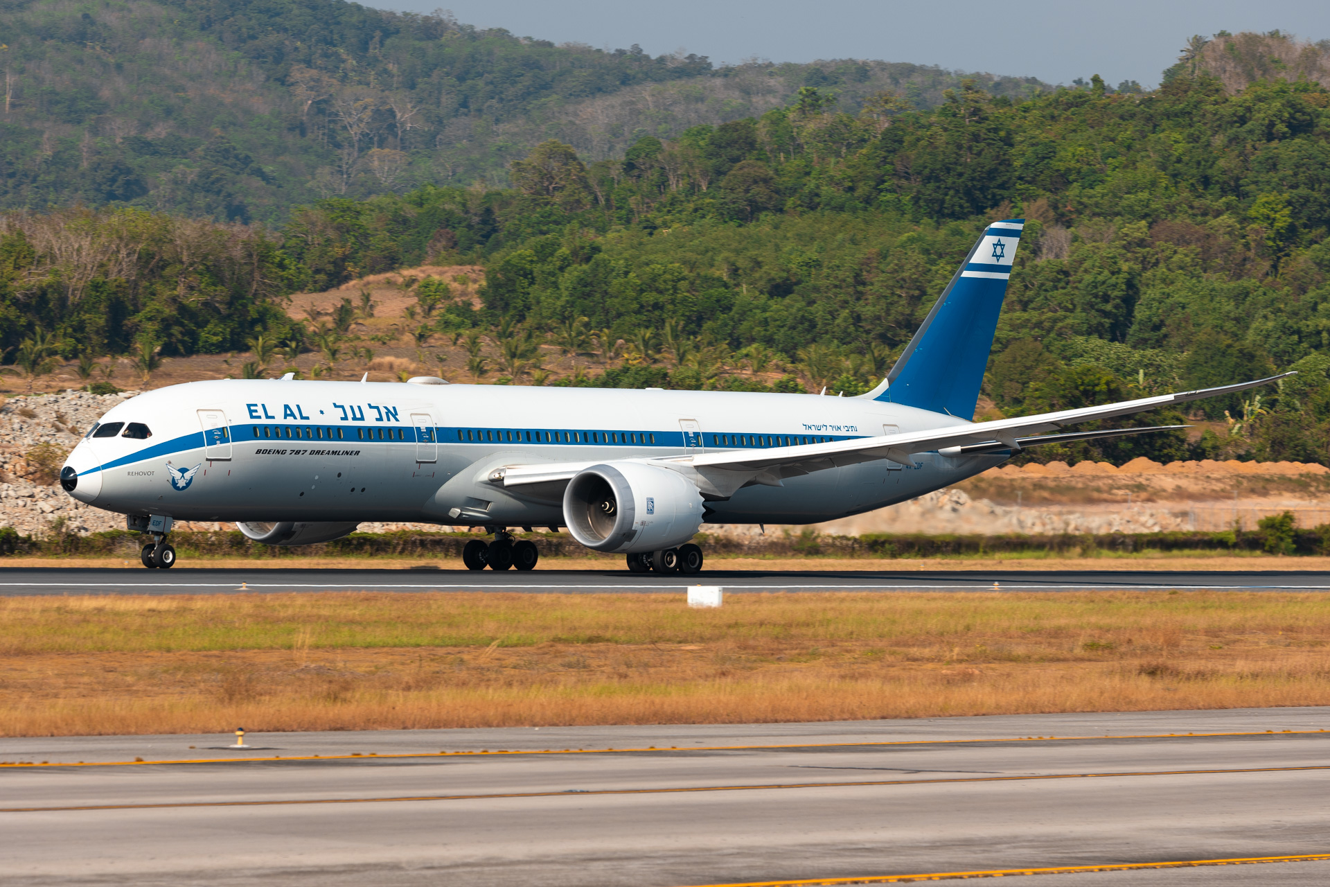 An El Al Boeing 787-8, registered as 4X-ERA taking off from runway 27