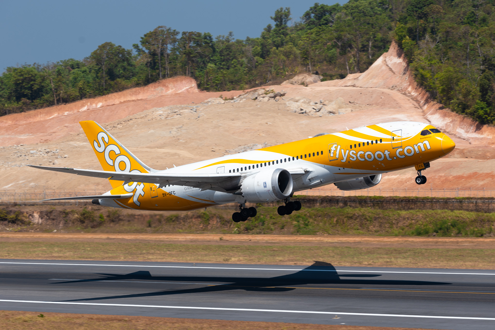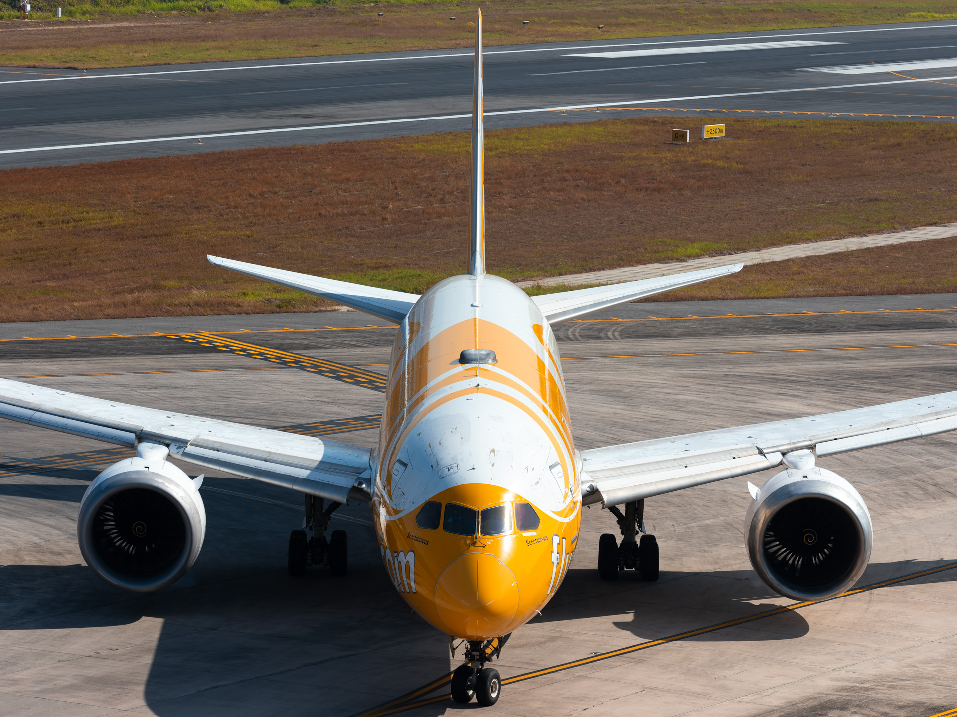 A Thai Airways Boeing 787-8, registered as HS-THG taxiing to the active runway