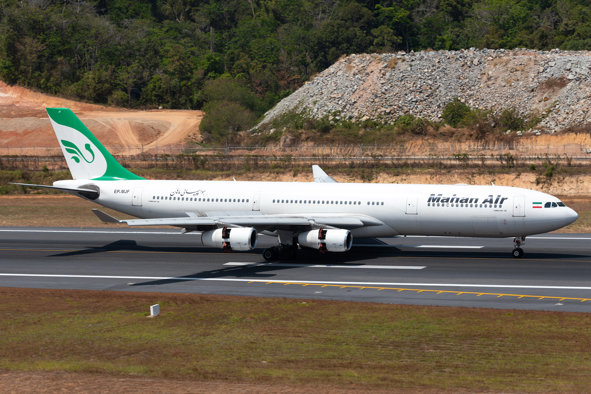 A Mahan Air Airbus A340-642, registered as EP-MMQ, parked at BKK