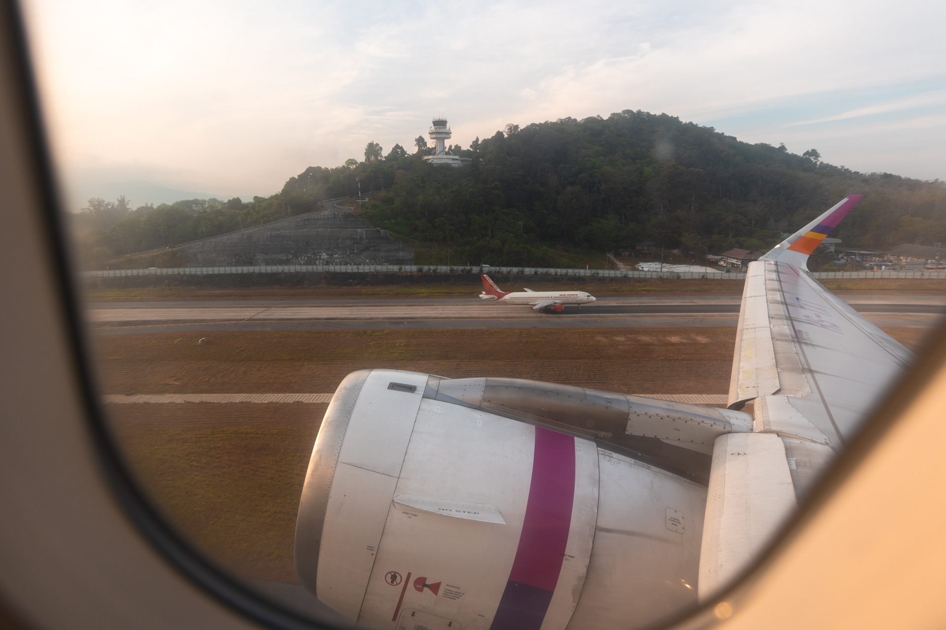 Nai Yang beach just before touching down. We were finally on the ground 59 minutes after taking off, resulting in a final delay of 37 minutes. We deplaned a couple of