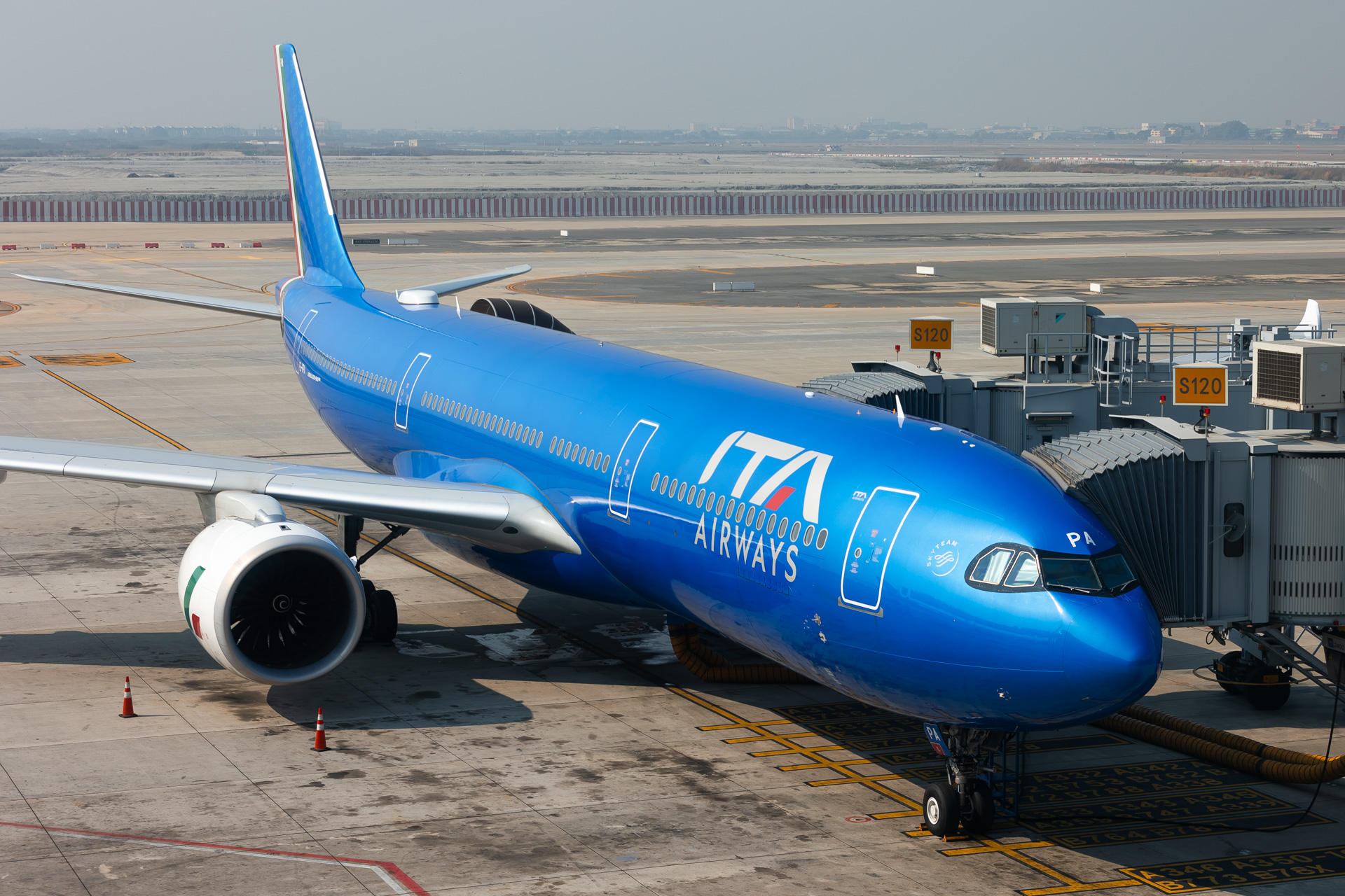 An ITA Airways Airbus A330-941neo, registered as EI-HPA resting at the gate