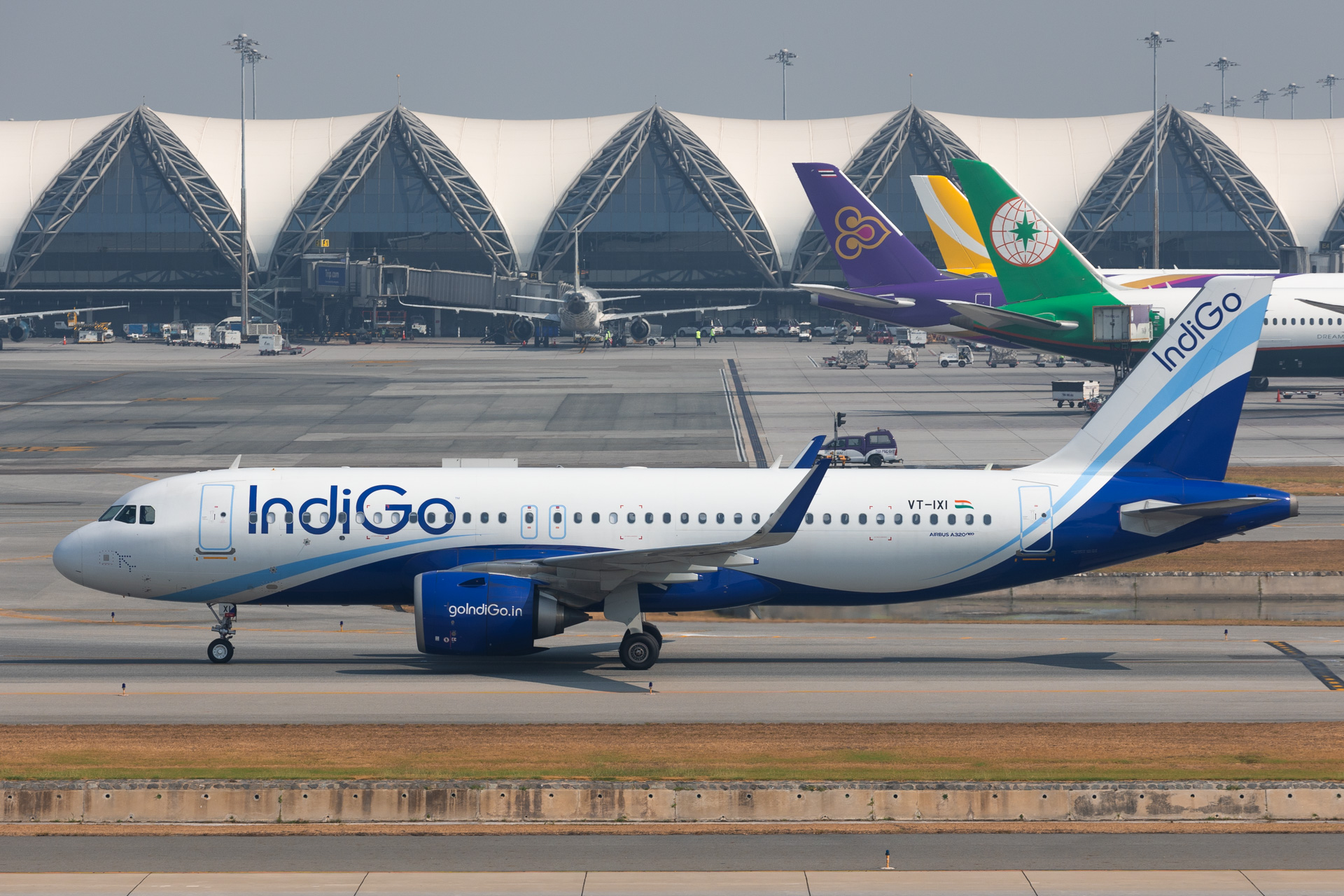 An IndiGo Airbus A320-251neo, registered as VT-IXI taxiing to the active runway