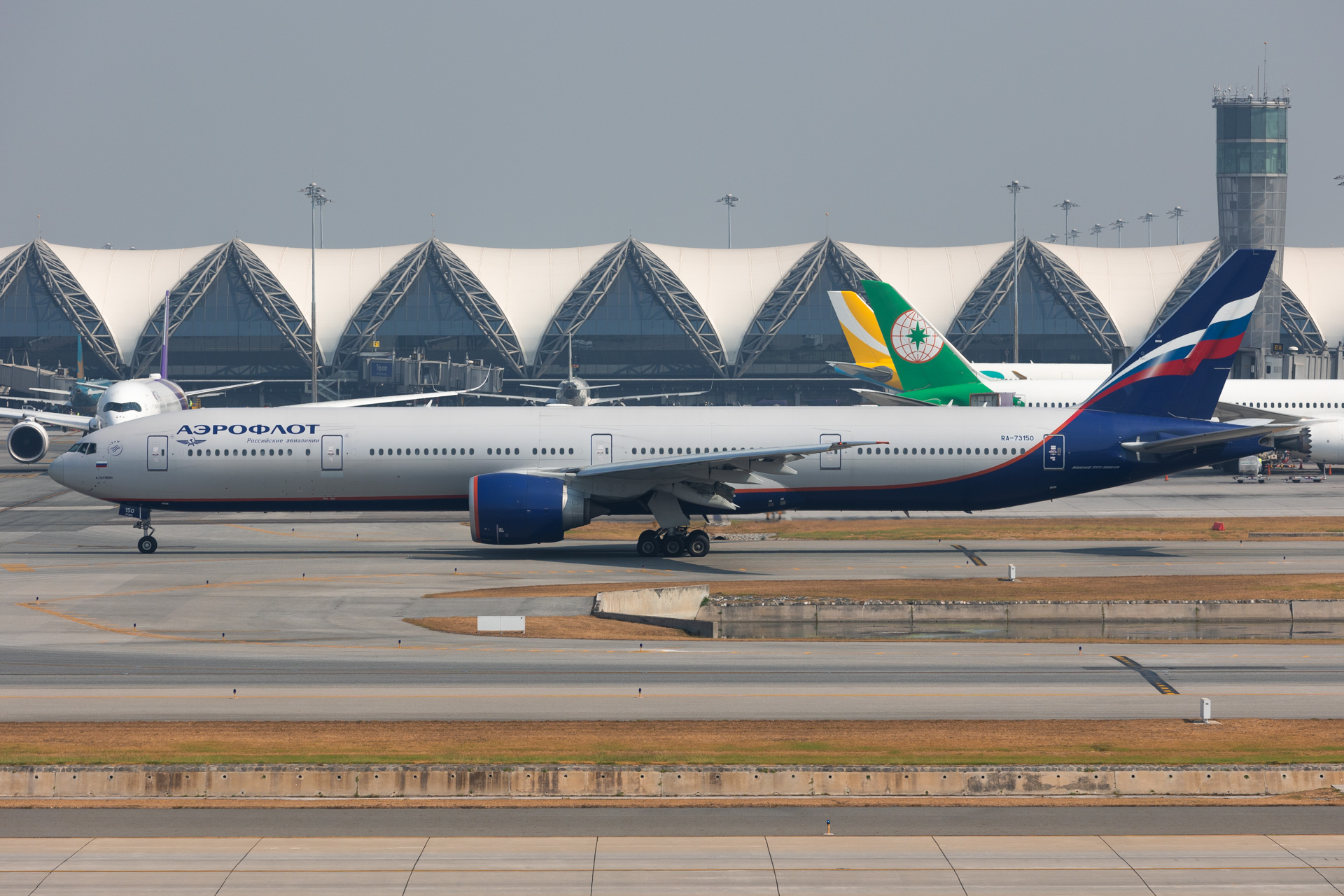 An Aeroflot Boeing 777-3M0(ER), registered as RA-73150 taxiing to the active runway