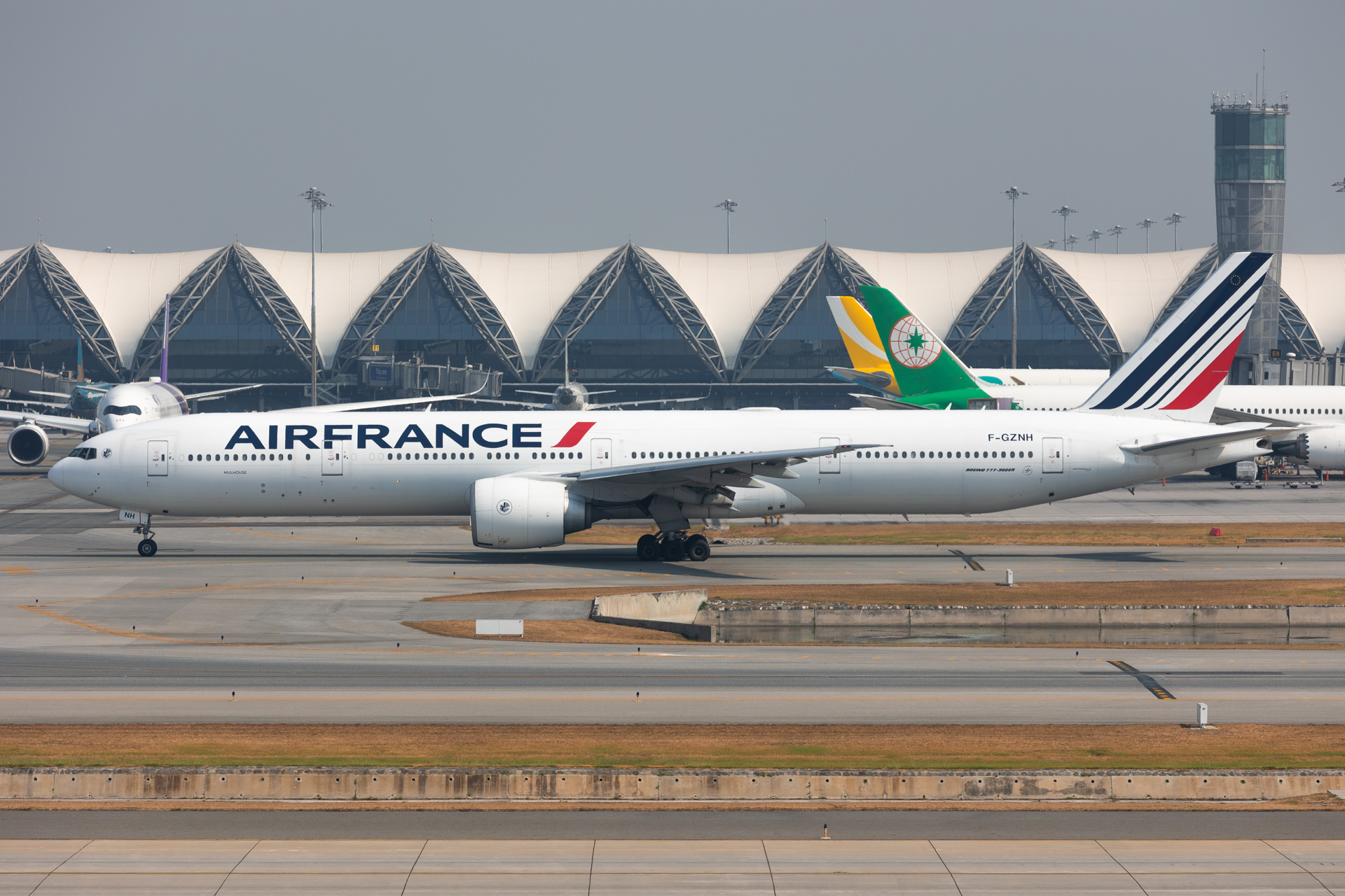 An Air France Boeing 777-328(ER), registered as F-GZNH taxiing to the active runway