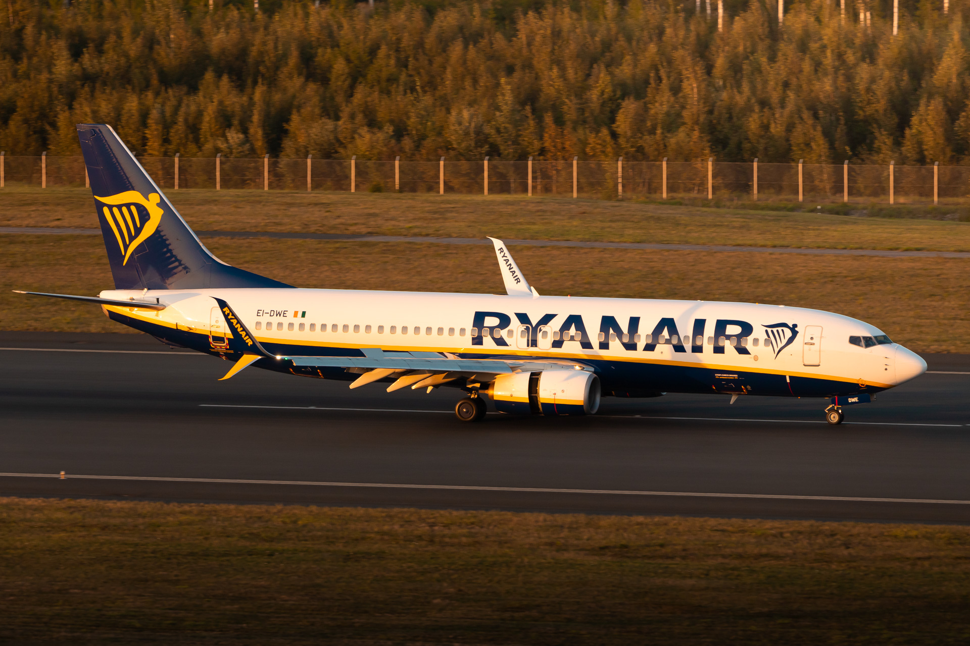 A Ryanair Boeing 737-8AS(WL) taxiing to its stand
