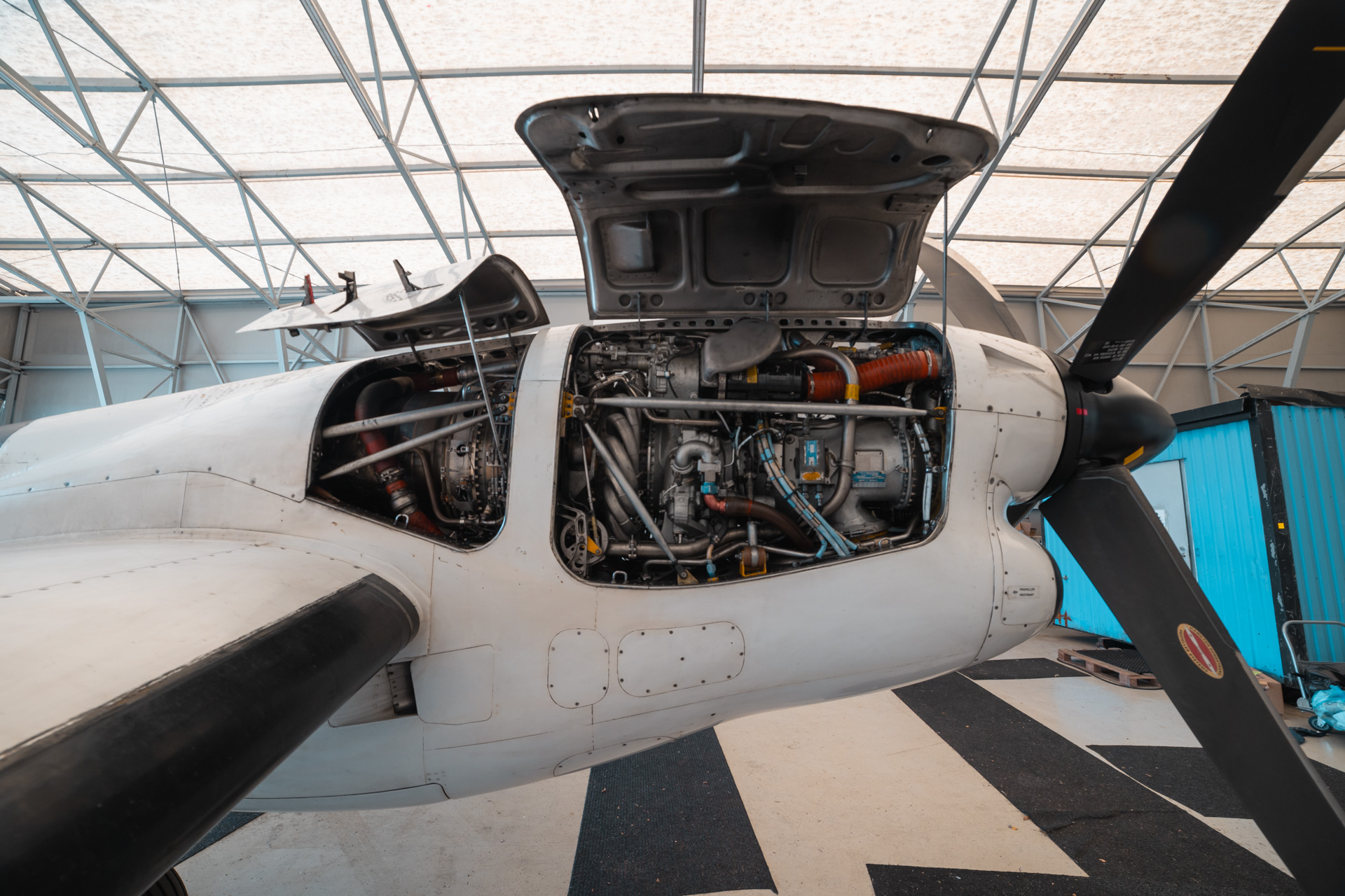 We spent a good 15 minutes in the cockpit where Adam explained every single instrument and all the gauges and switches we were interested in. He even made the effort and turned on the GPU so the screens lit up. After that he opened the engine cowlings to explain everything about the engines. It was very interesting to hear all the informations, especially after just having flown on the same exact airframe.