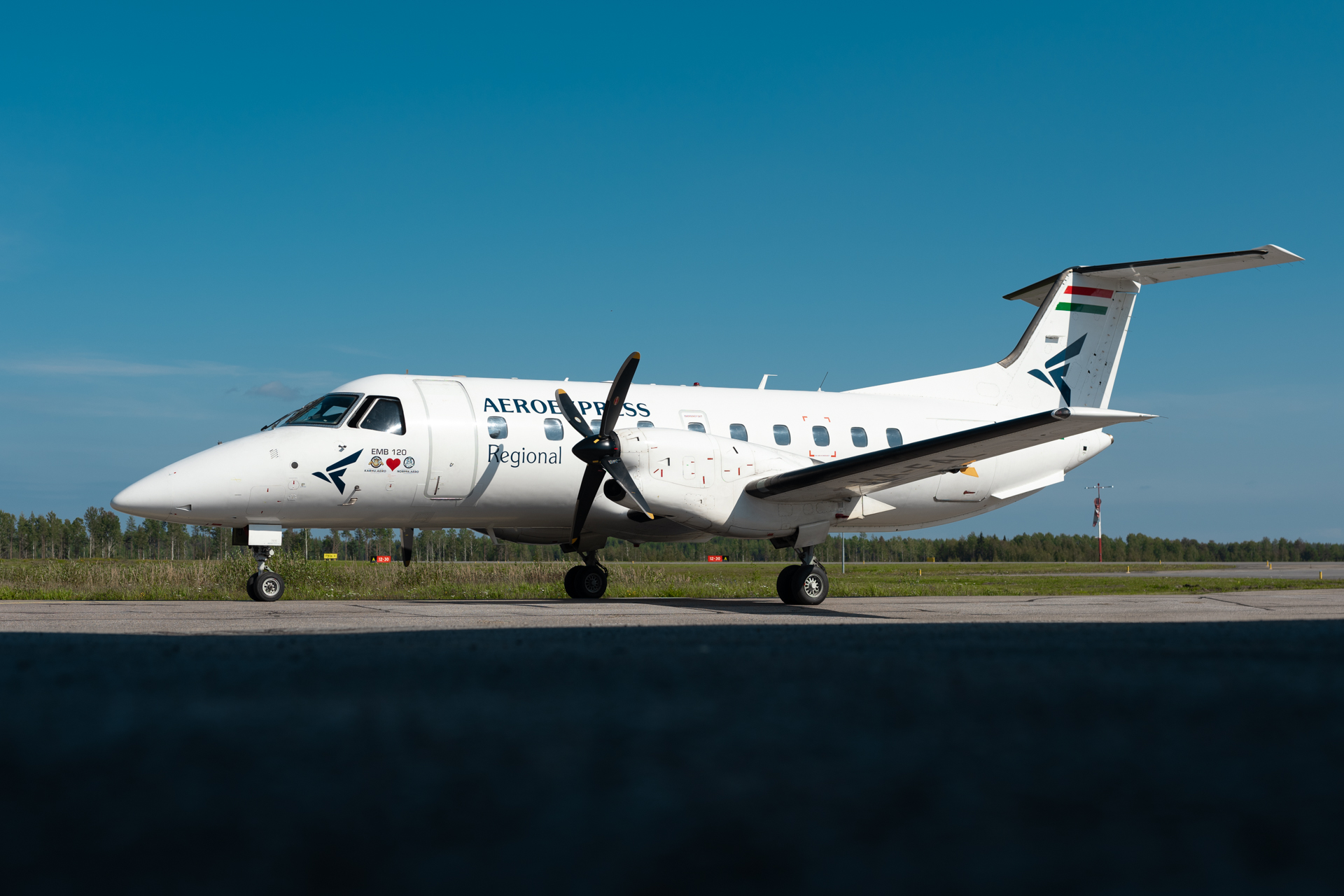 When looking at the arrival and departure boards of Helsinki Airport two Embraer EMB-120's operating several daily flights to Pori and Savonlinna caught my eye. I had never spotted nor flown on an EMB-120 so my curious self looked up the prices for both routes. The Savonlinna flights were priced at only 59€ roundtrip (also including a checked bag!) so we could not help ourselves and booked a roundtrip, departing Helsinki in the morning and flying back the same day in the early afternoon. The Embraer EMB-120 is extremely rare, especially here in Europe with only three airframes operating passenger flights.
