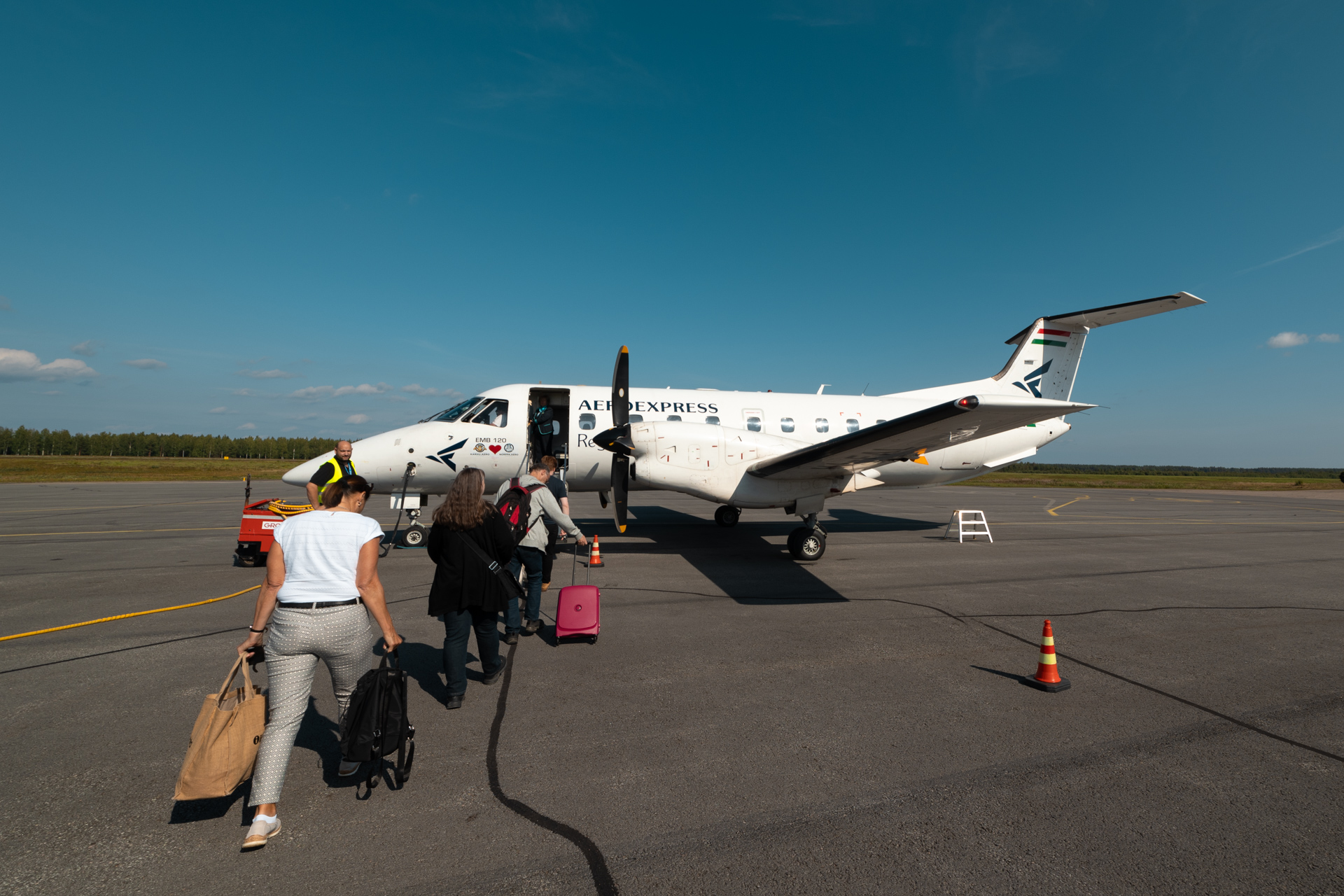 Then it was time to head back to the terminal to go through security and wait for boarding. There were nine other passengers on the flight back to Helsinki, definitely more than on the flight to Savonlinna but still only a load factor of roughly 35%. Boarding started shortly after we passed through security. We walked over the apron to the same aircraft that had brought us here to the same crew that had brought us here. Adam was waiting there as well to say goodbye to us, which was super nice.