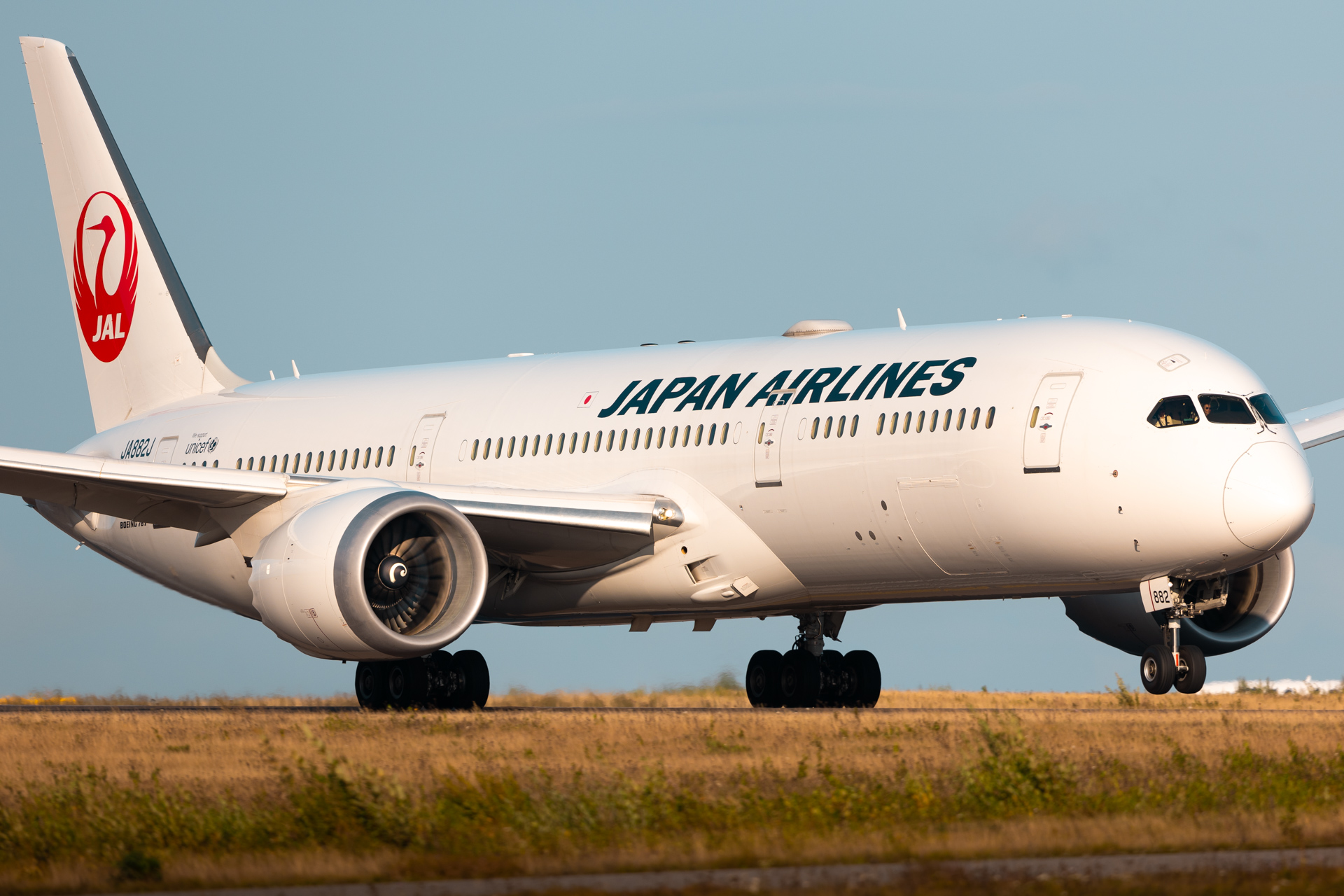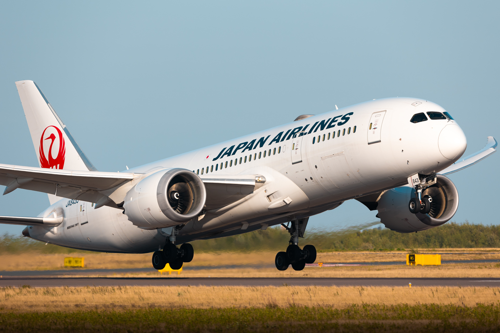 A Japan Airlines Boeing 787-8 departing runway 22R