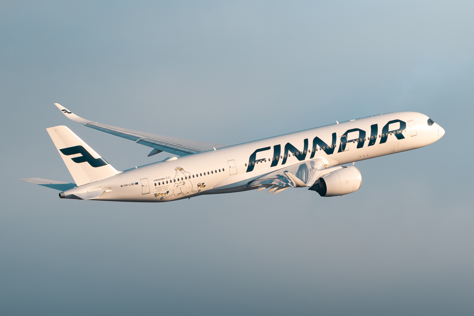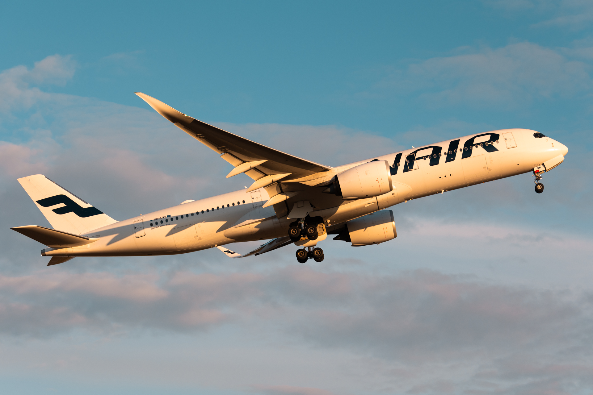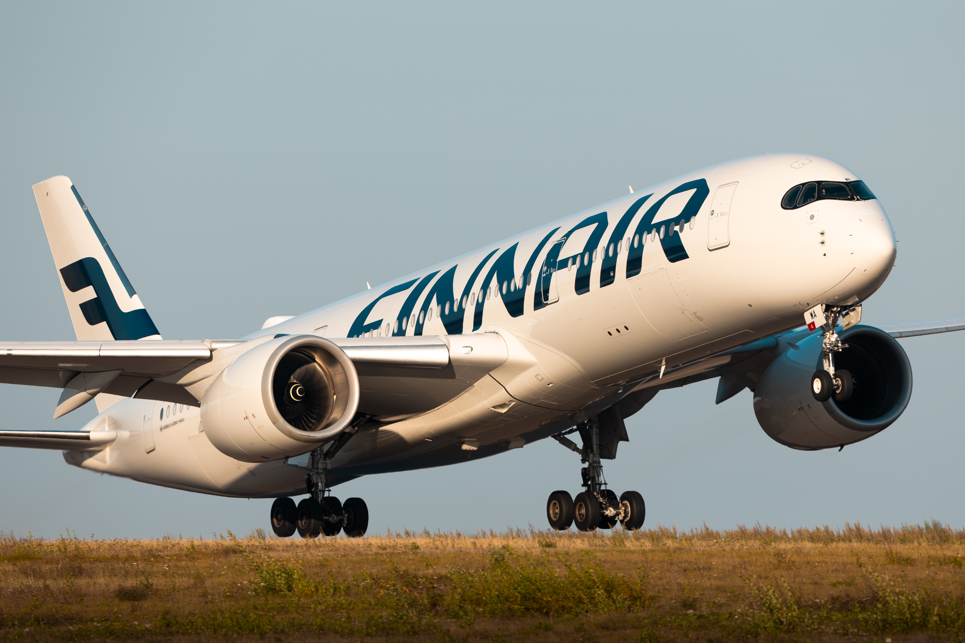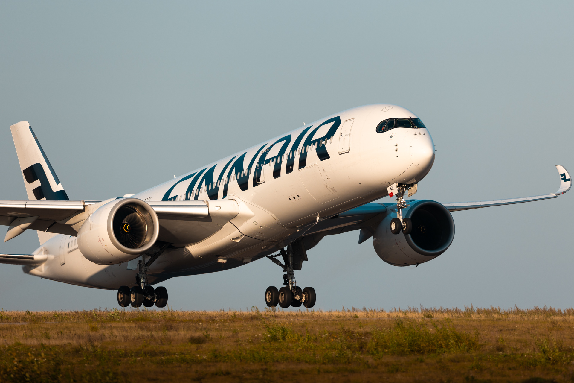 A Finnair Airbus A350 departing runway 22L