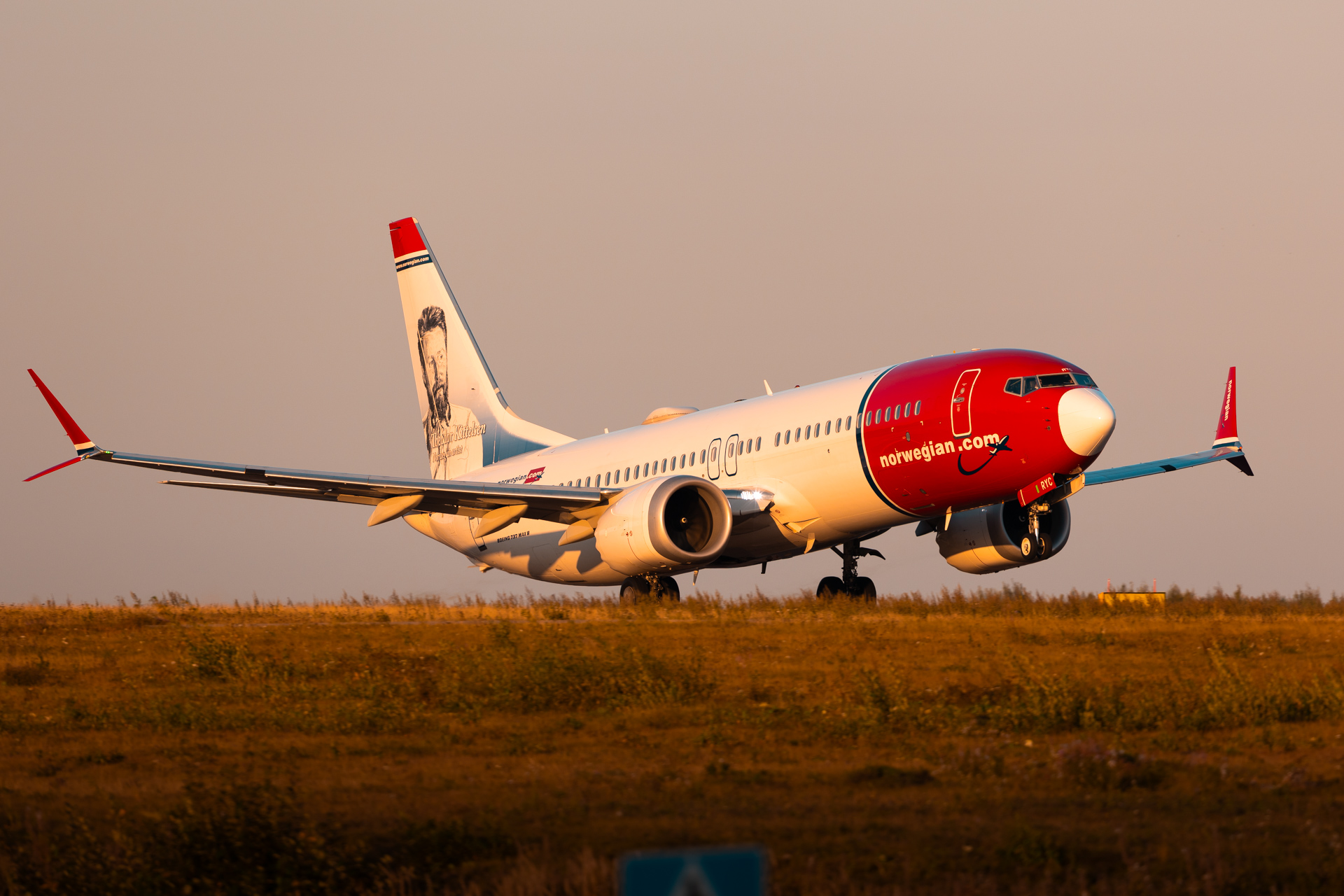 A Norwegian Boeing 737 MAX 8 departing runway 22R