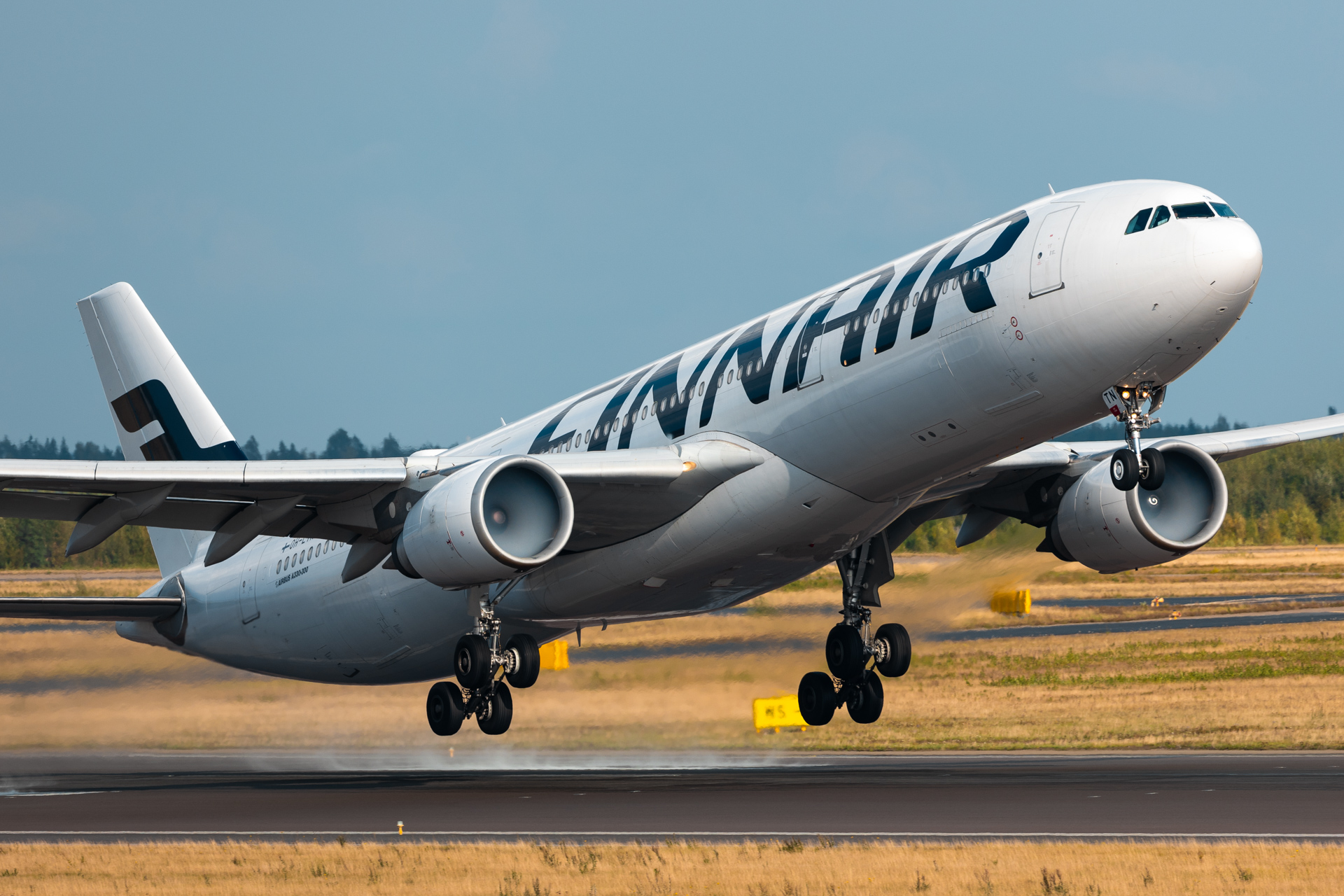 A Finnair Airbus A330 departing runway 22R