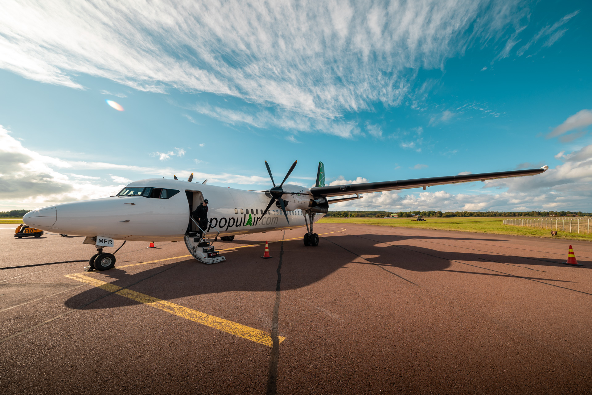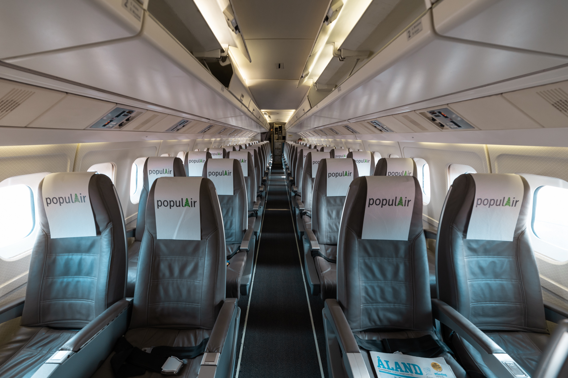 Our aircraft for today was SE-MFR, a 32 year old Fokker 50. This is the youngest of seven Fokker 50 flying for the swedish airline Populair, which operates lots of domestic routes mostly in Sweden. The flight from Turku to Mariehamn continues to Stockholm after a very short stop in Mariehamn.