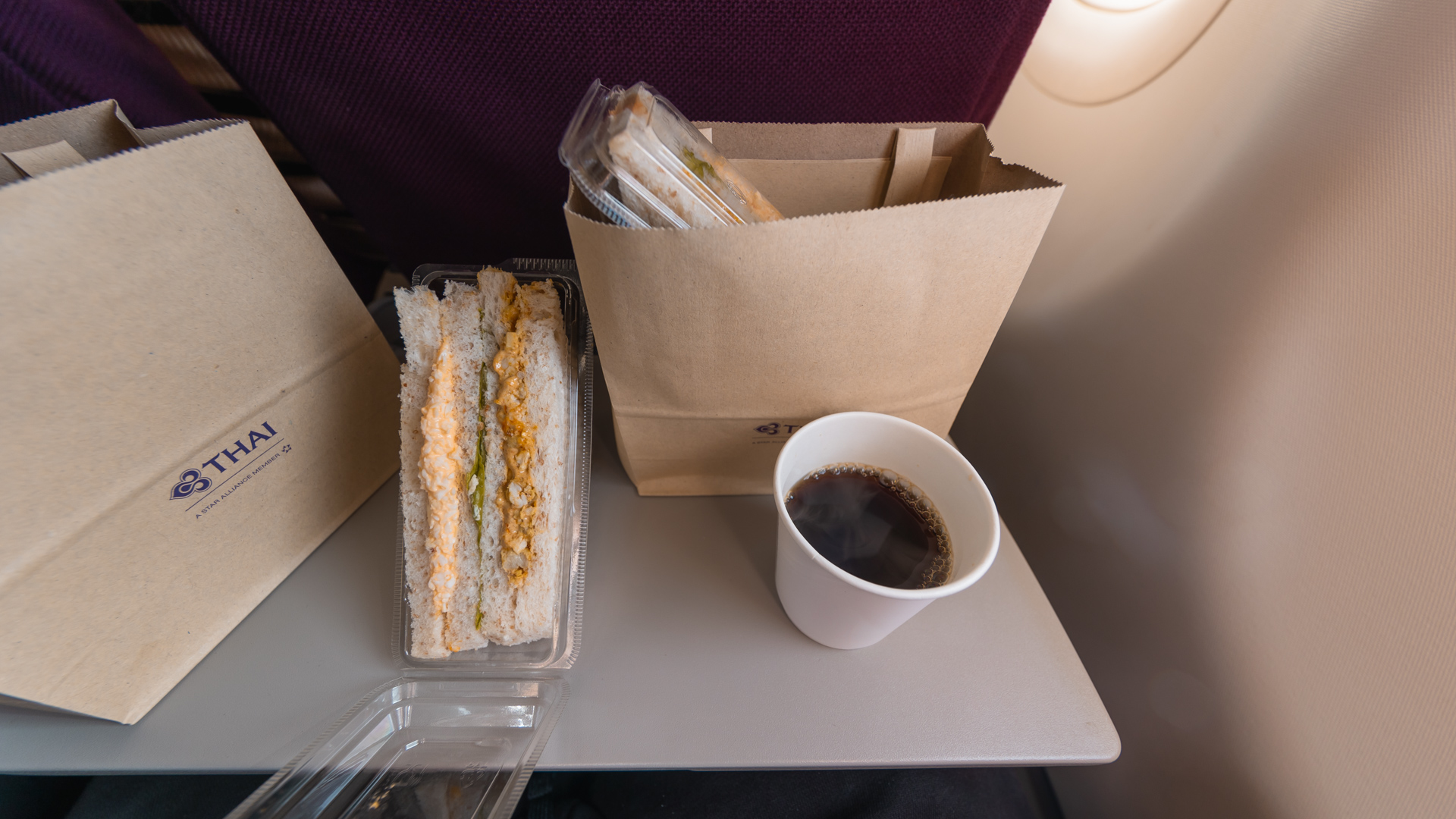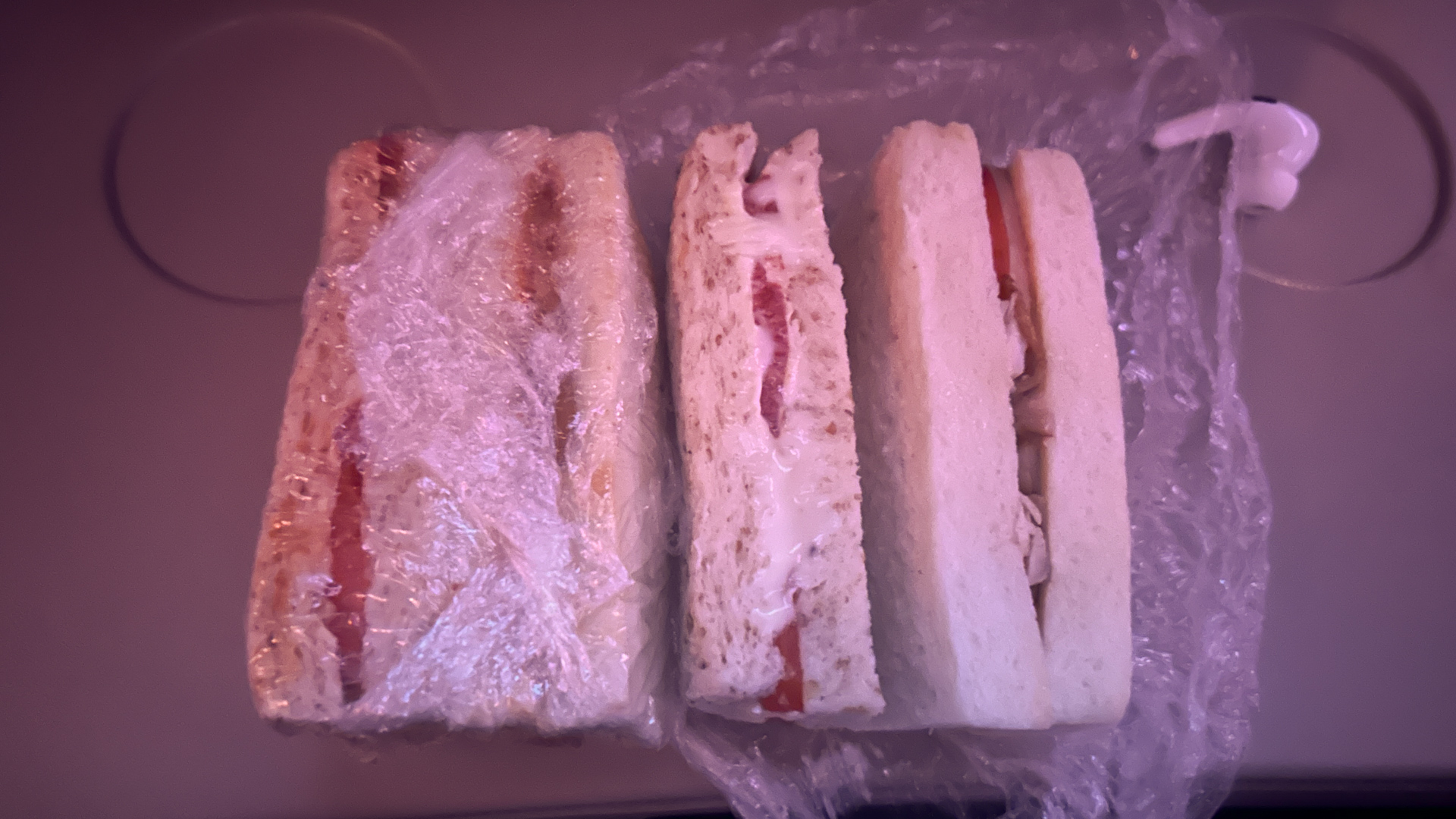 As soon as the seatbelt signs switched off, crew started their service. They handed out a bag, similar to the previous flight, this time containing a chicken and egg sandwich.