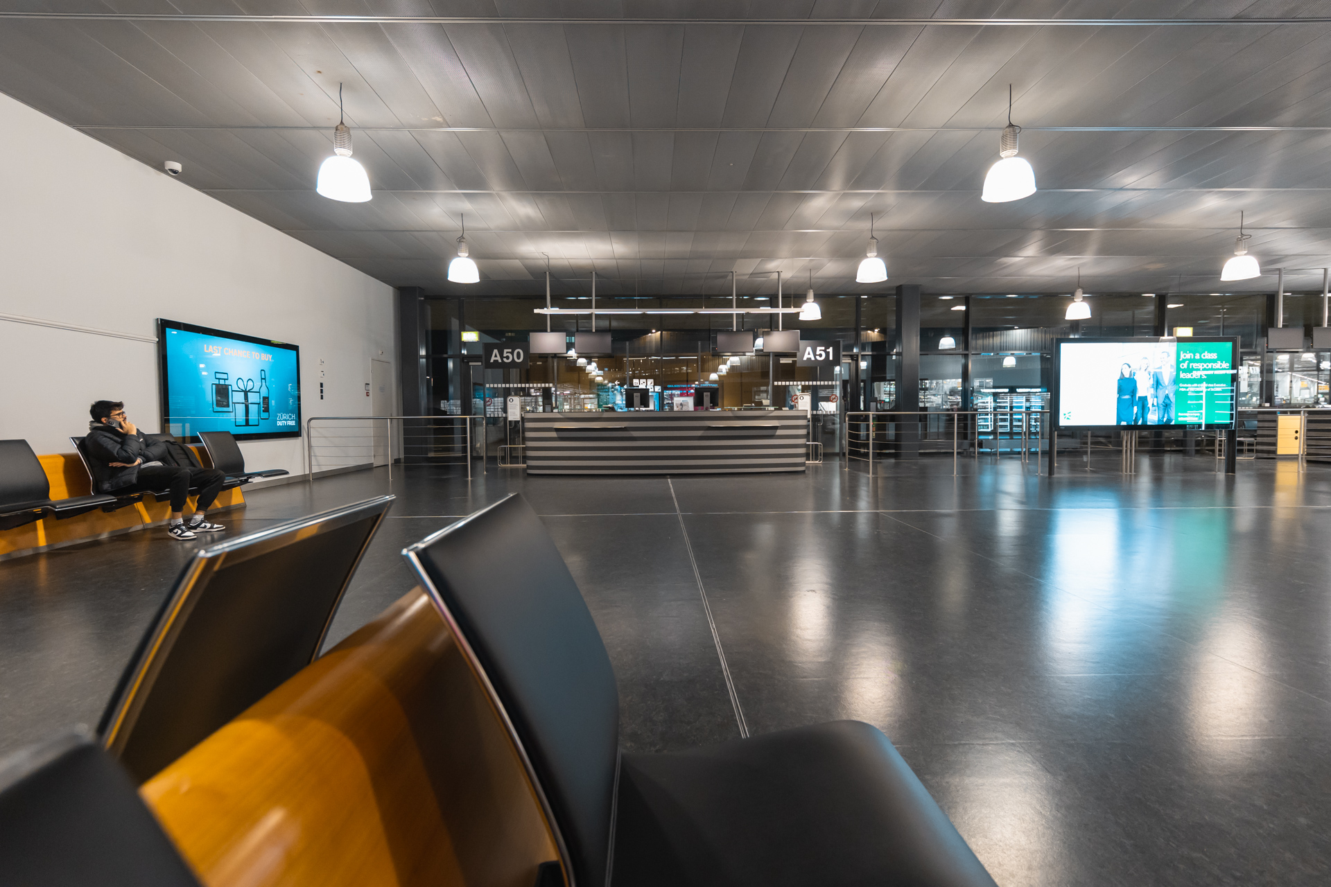 We touched down on runway 26L, 33 minutes after departing from ZRH. After a short taxi roll we disembarked. Our layover was only about an hour, so we