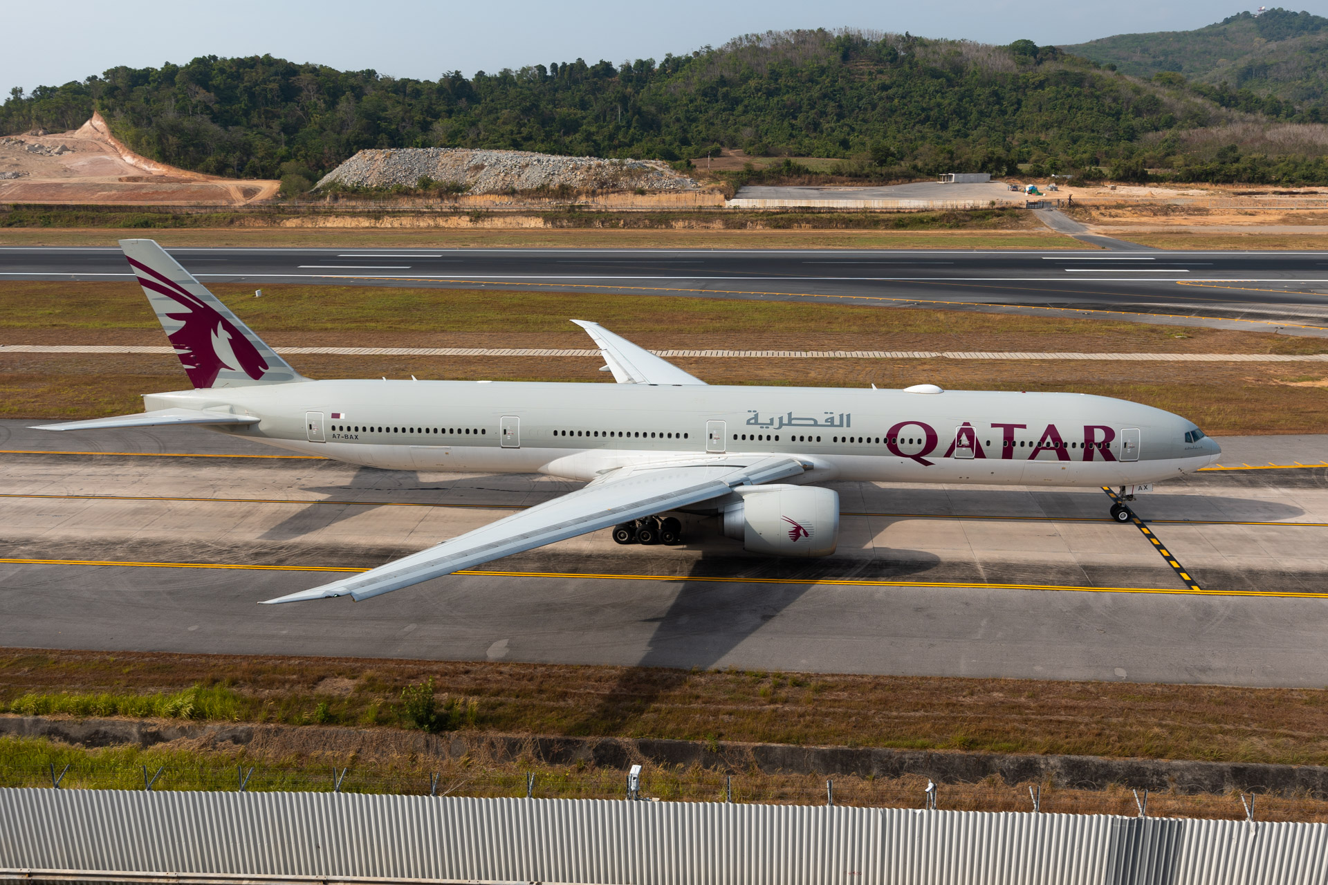A Qatar Airways Airbus A380-861, registered as A7-APD taxiing to the gate
