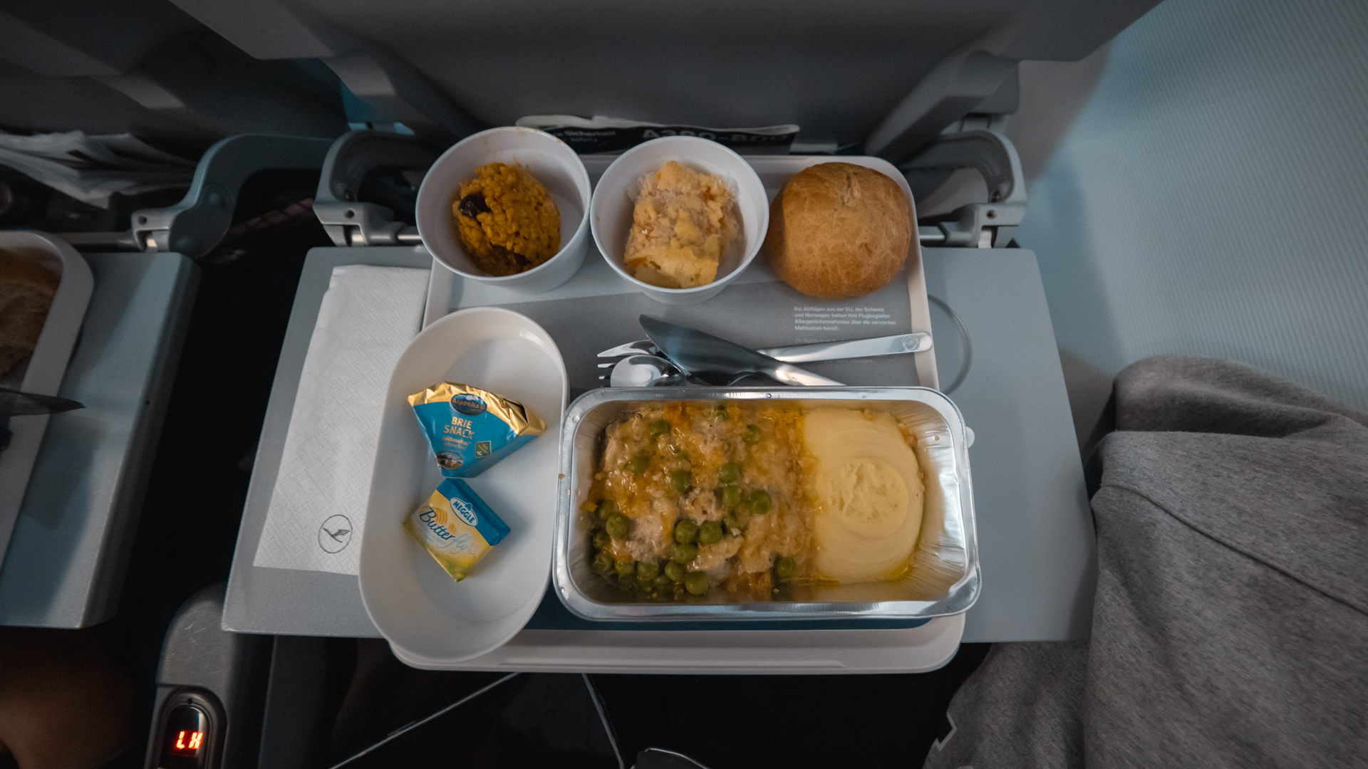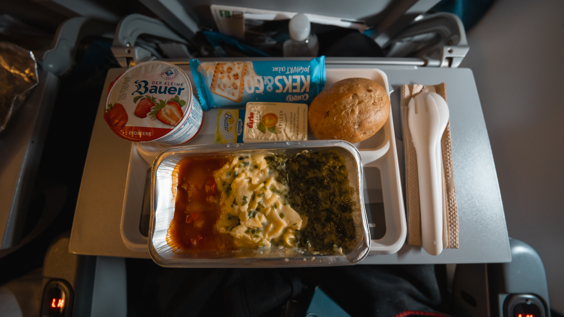 I went for the scrambled eggs, which honestly were among the worst airplane food I had in a while… You can do better, Lufthansa!