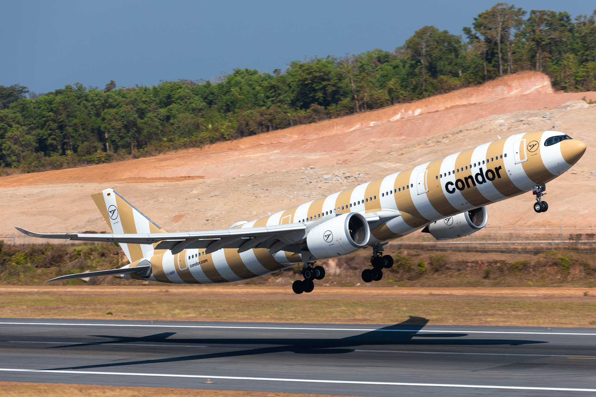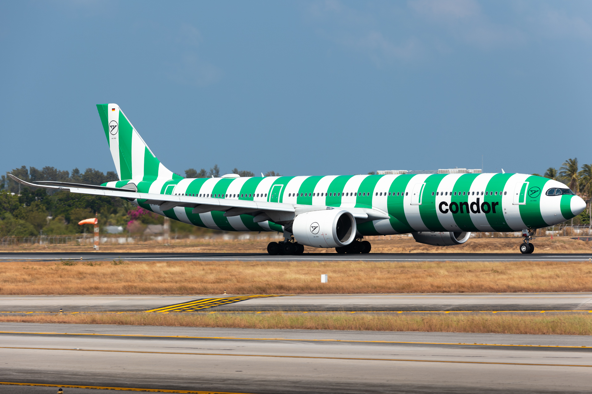 A Condor Airbus A330-941neo, registered as D-ANRC at the gate