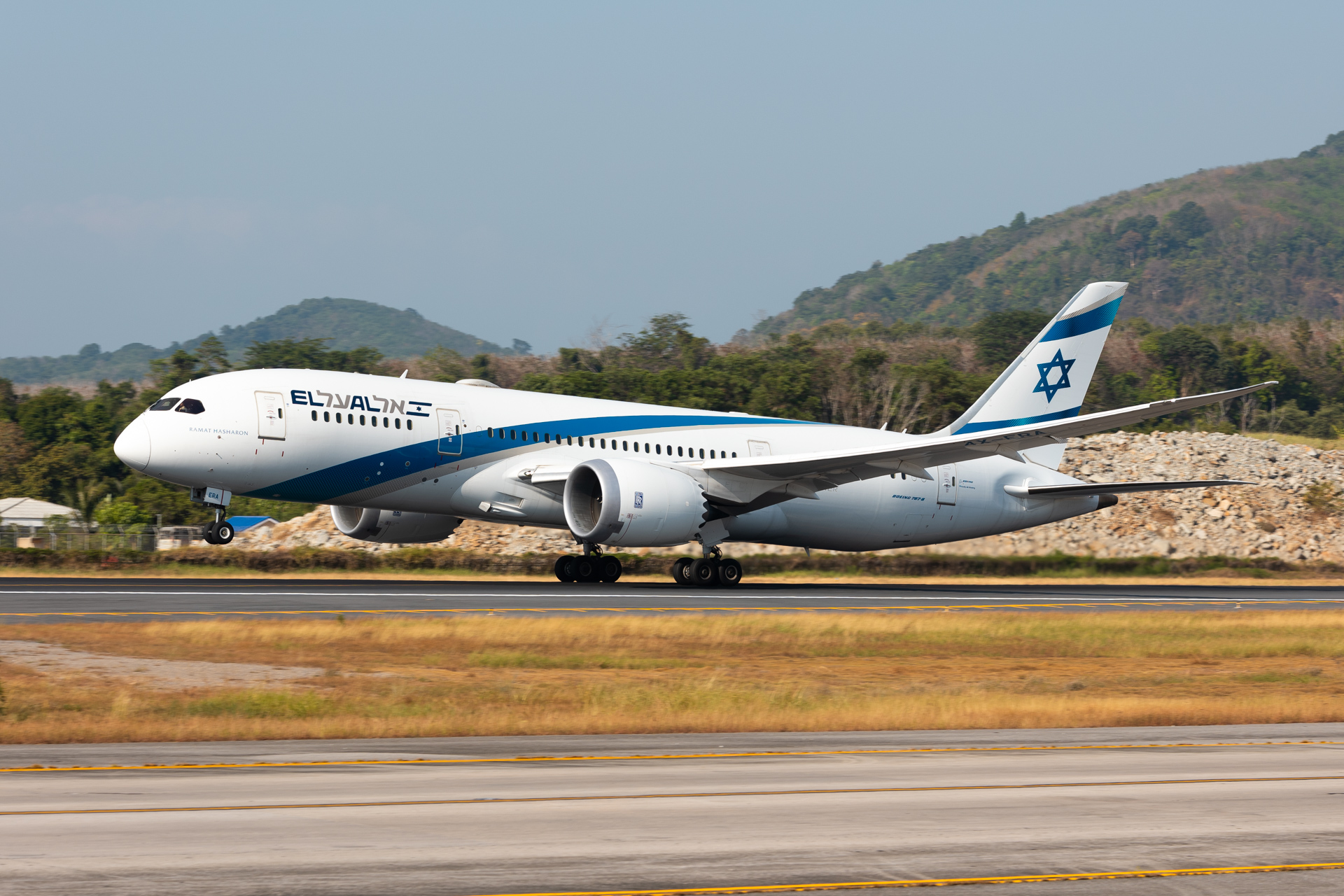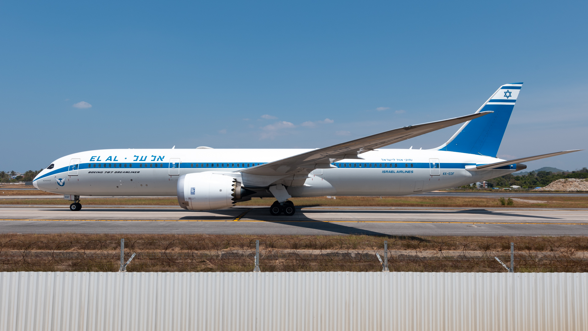 An El Al Boeing 787-8, registered as 4X-ERA taking off from runway 27