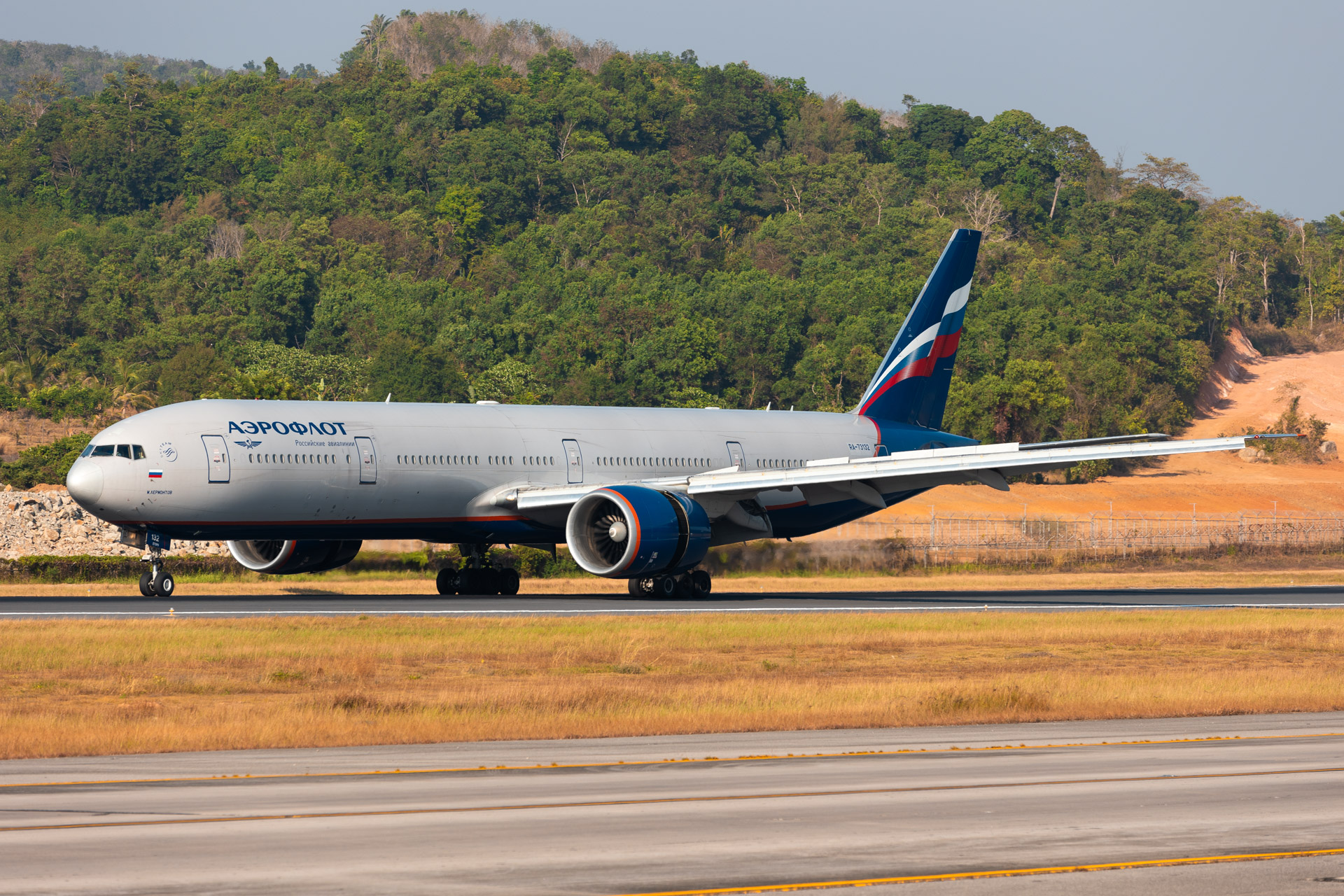 An Aeroflot Boeing 777-3M0(ER), registered as RA-73150 taxiing to the active runway