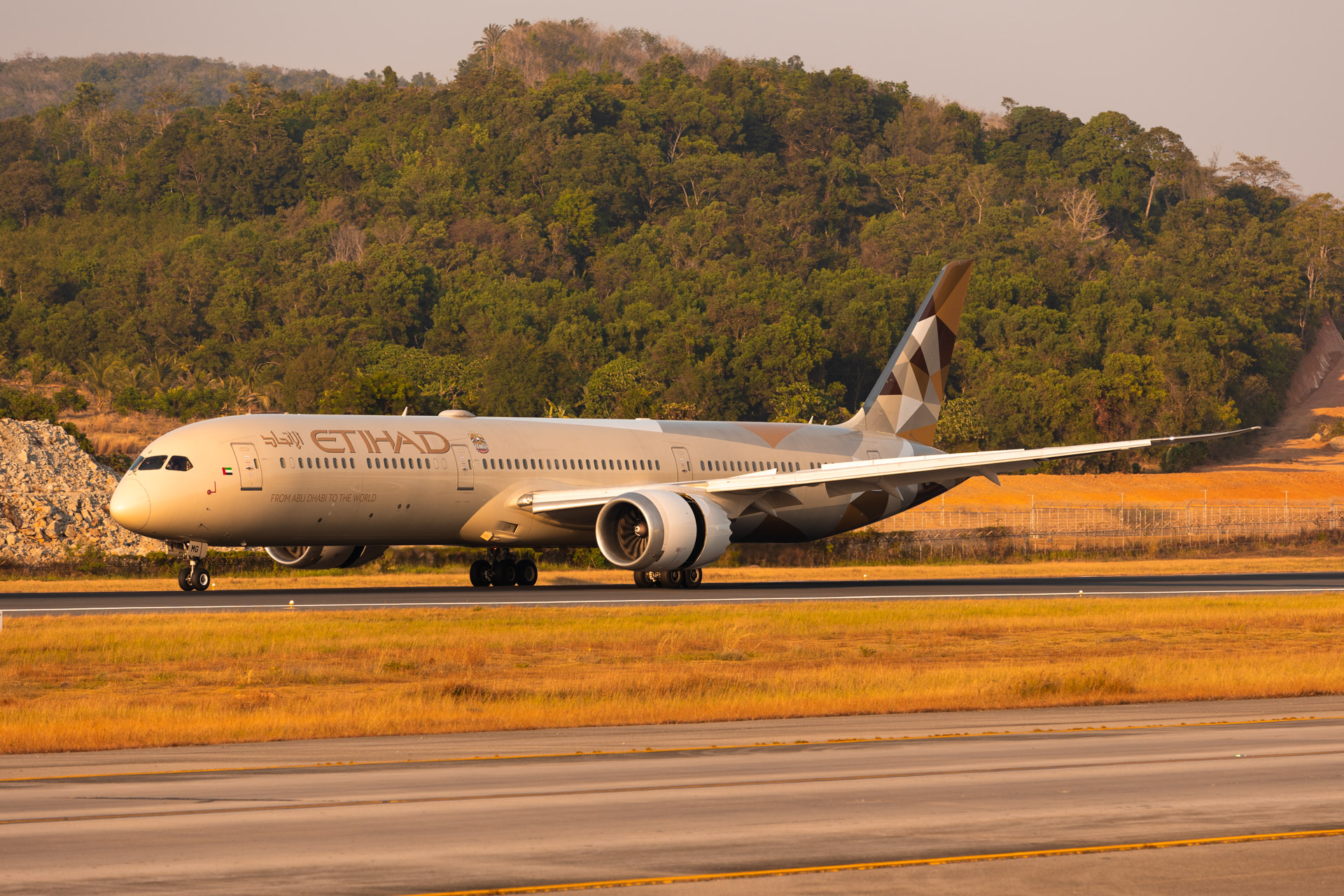 A Tui Airways Boeing 787-8, registered as G-TUID taking off from runway 27