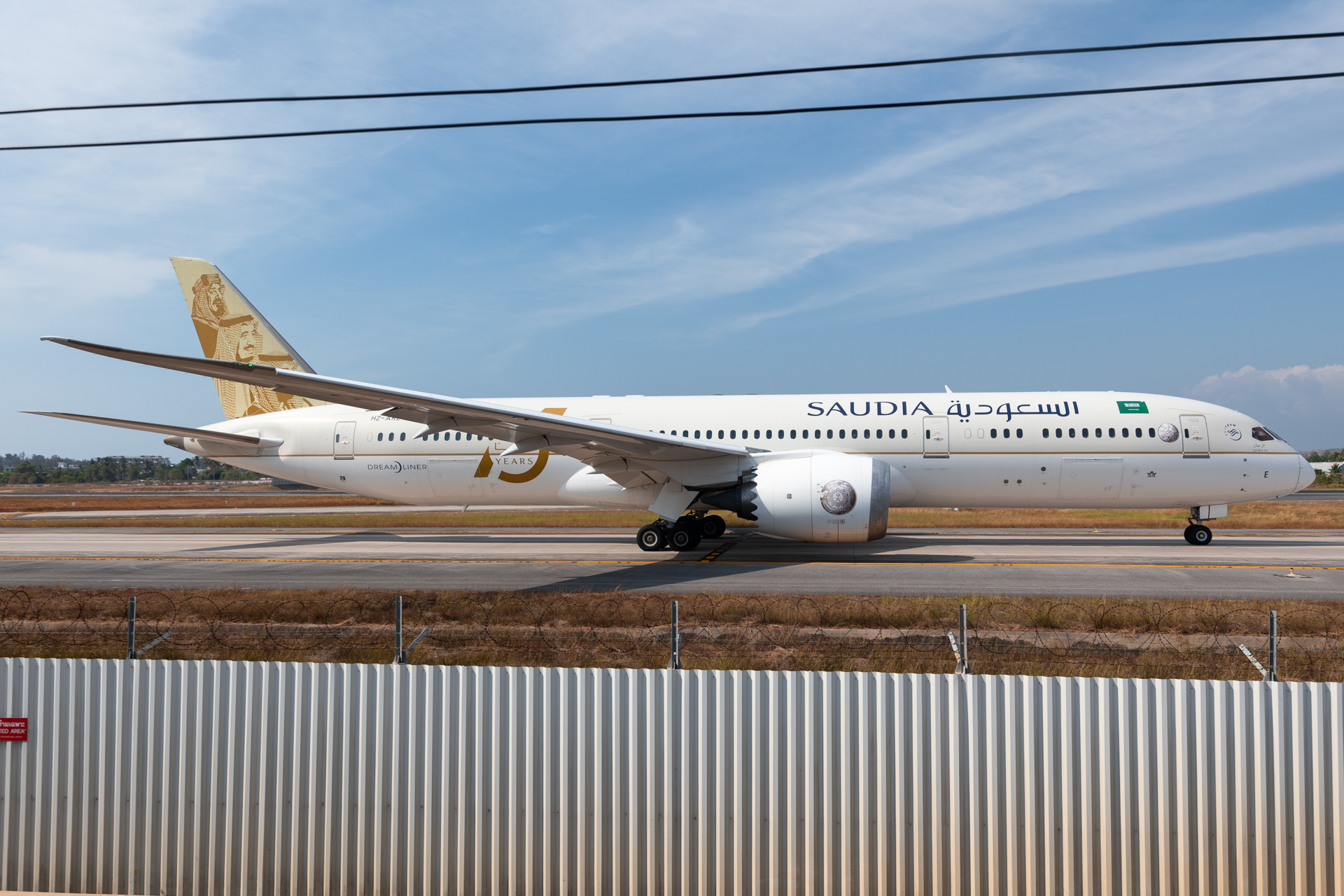 A Thai Airways Boeing 787-8, registered as HS-THG taxiing to the active runway