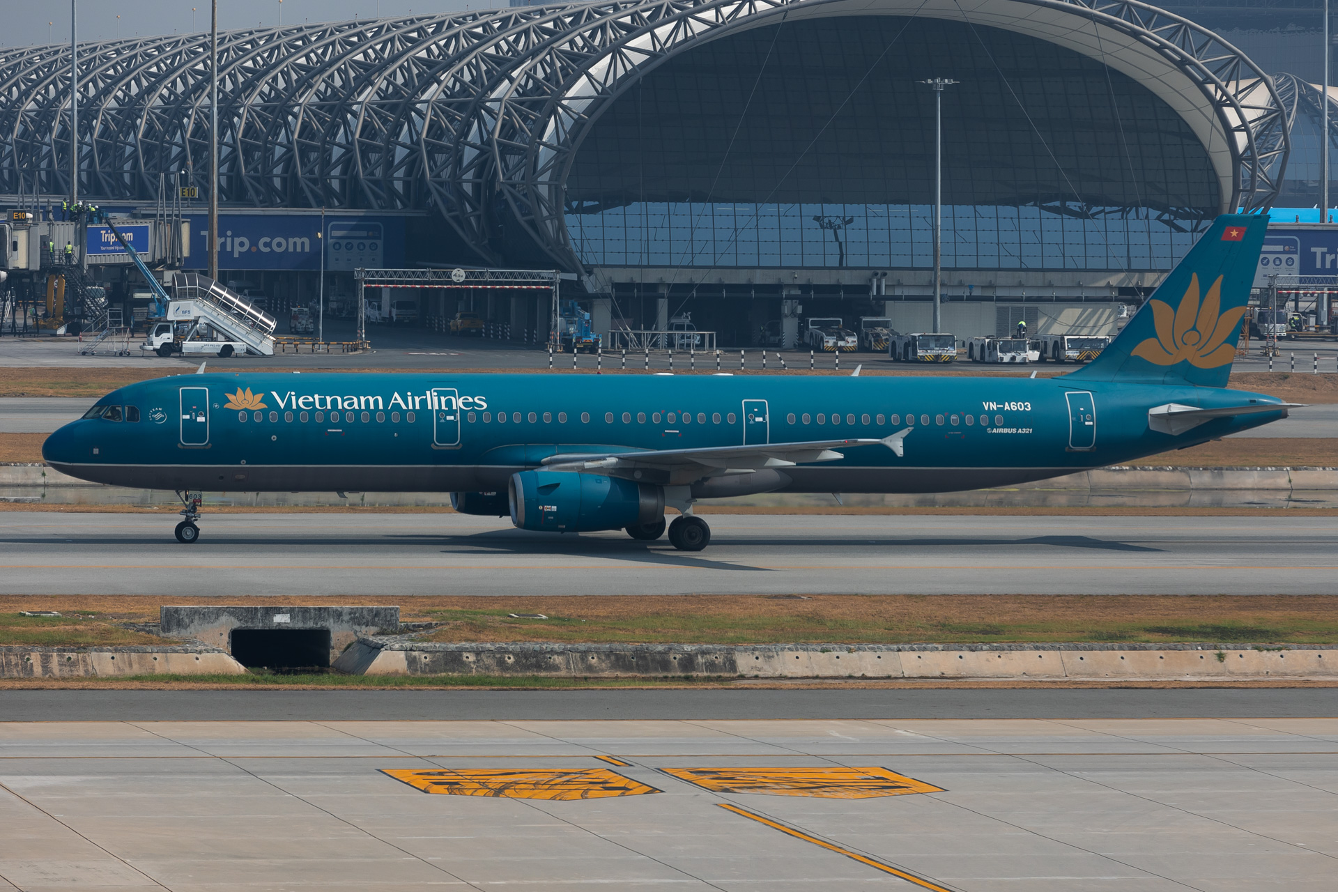 A Vietnam Airlines Airbus A321-231, registered as VN-A603 taxiing to the active runway